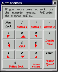Si por casualidad nuestro mouse fué mal detectado (caso común cuando disponemos de un mouse serie pero nuestra máquina posee además bus ps2), podremos utilizar las teclas del teclado numérico para mover el puntero en pantalla tal como se muestra a continuación.
