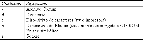 El primer símbolo nos esta indicando que el archivo es un archivo común.